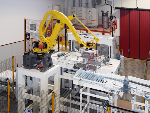 Concetti offers a wide range of palletizers - robotic, robotic arm, bag-in-box, and push-types - which perform in different ways. You can choose among different machines, depending on your speed requirements and material to bag.